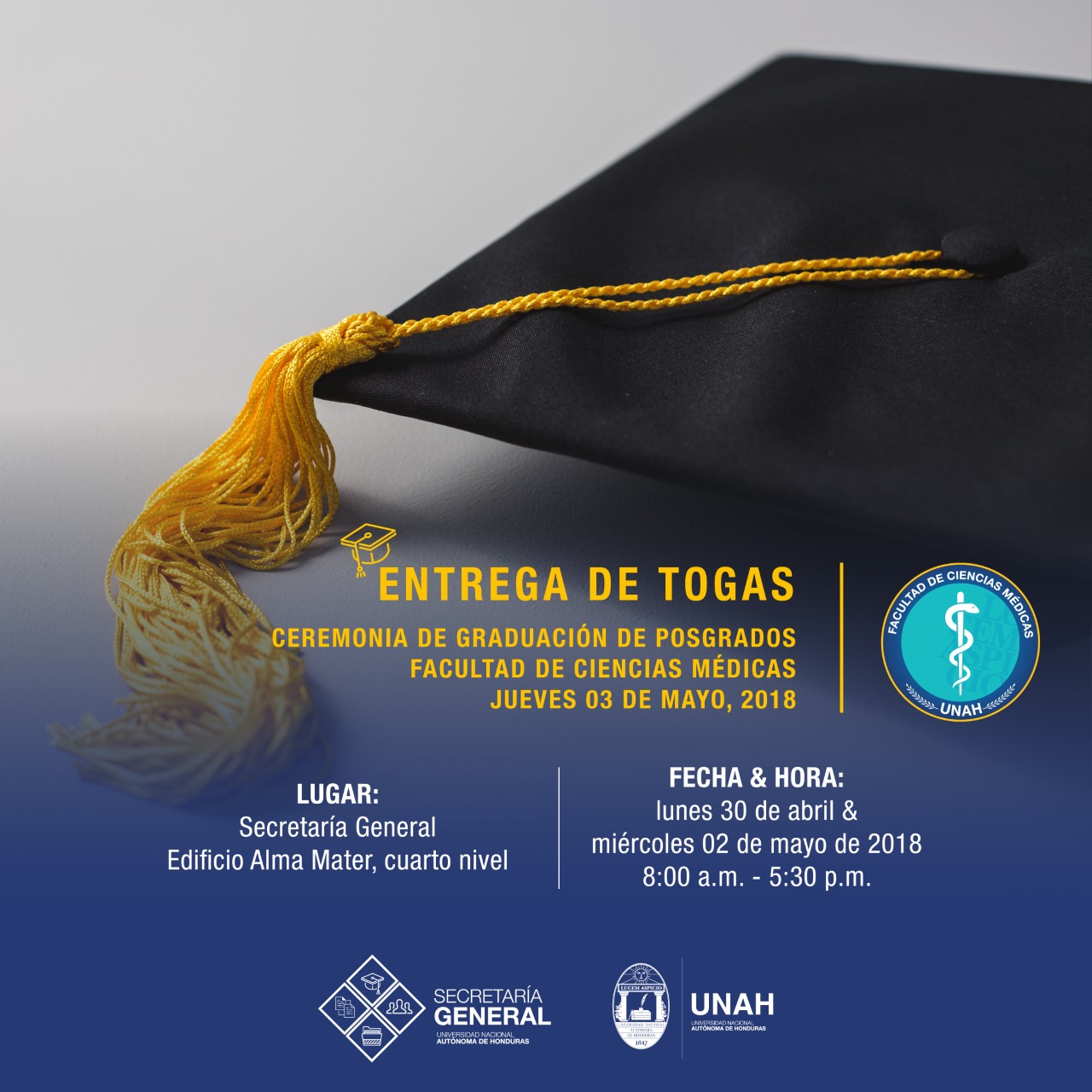 CALENDARIO DE ENTREGA DE TOGAS PARA CEREMONIA DE GRADUACIÓN PÚBLICA CIUDAD UNIVERSITARIA ,SÁBADO 16 DE JUNIO DEL 2018