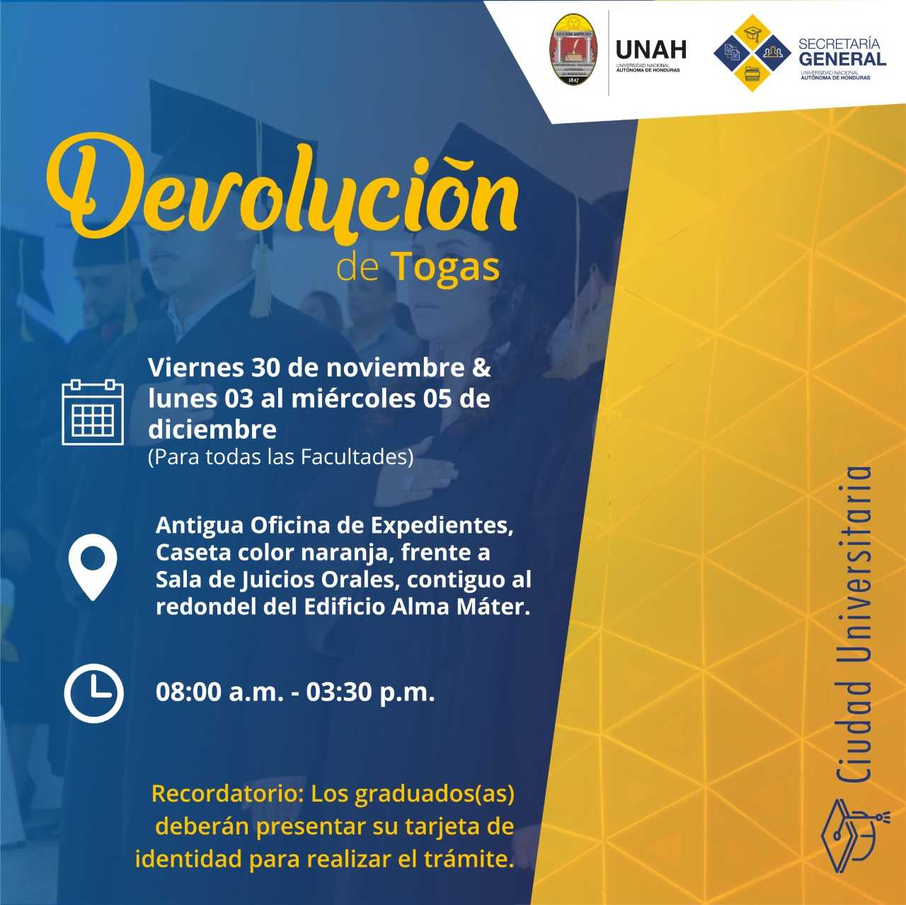 DEVOLUCIÓN DE TOGA DE GRADUACIÓN DEL SÁBADO 24 DE NOVIEMBRE DEL 2018